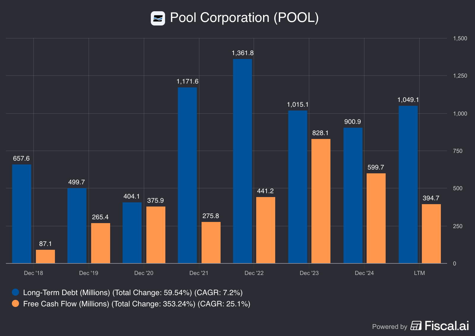 Pool Corp has been able to weather this storm - its level of long-term debt is still under 3x FCF. They are in a strong position for when things rebound.