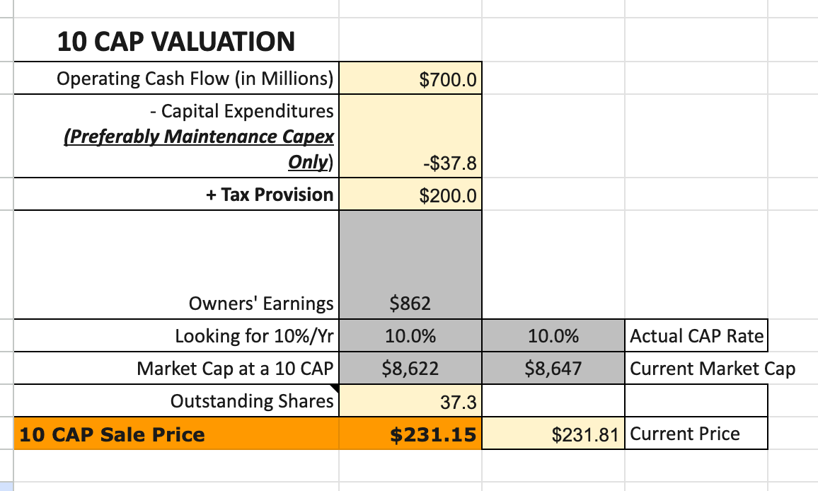 If I make a few assumptions that POOL’s performance returns to a more normalized environment, I think they are trading almost exactly at a 10 CAP from a valuation point of view. This is not factoring in any real significant, sustained growth that we know POOL is capable of in the past.